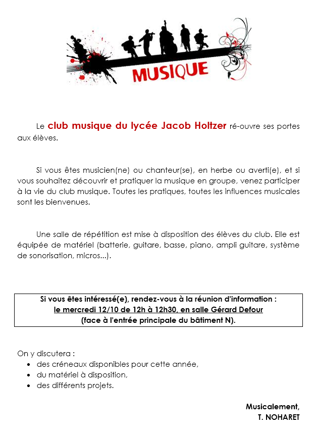 Réunion d'information du club musique